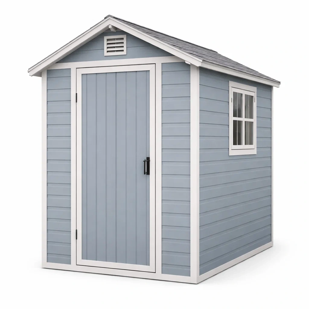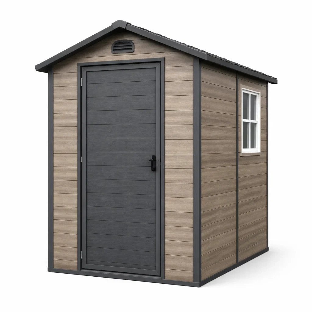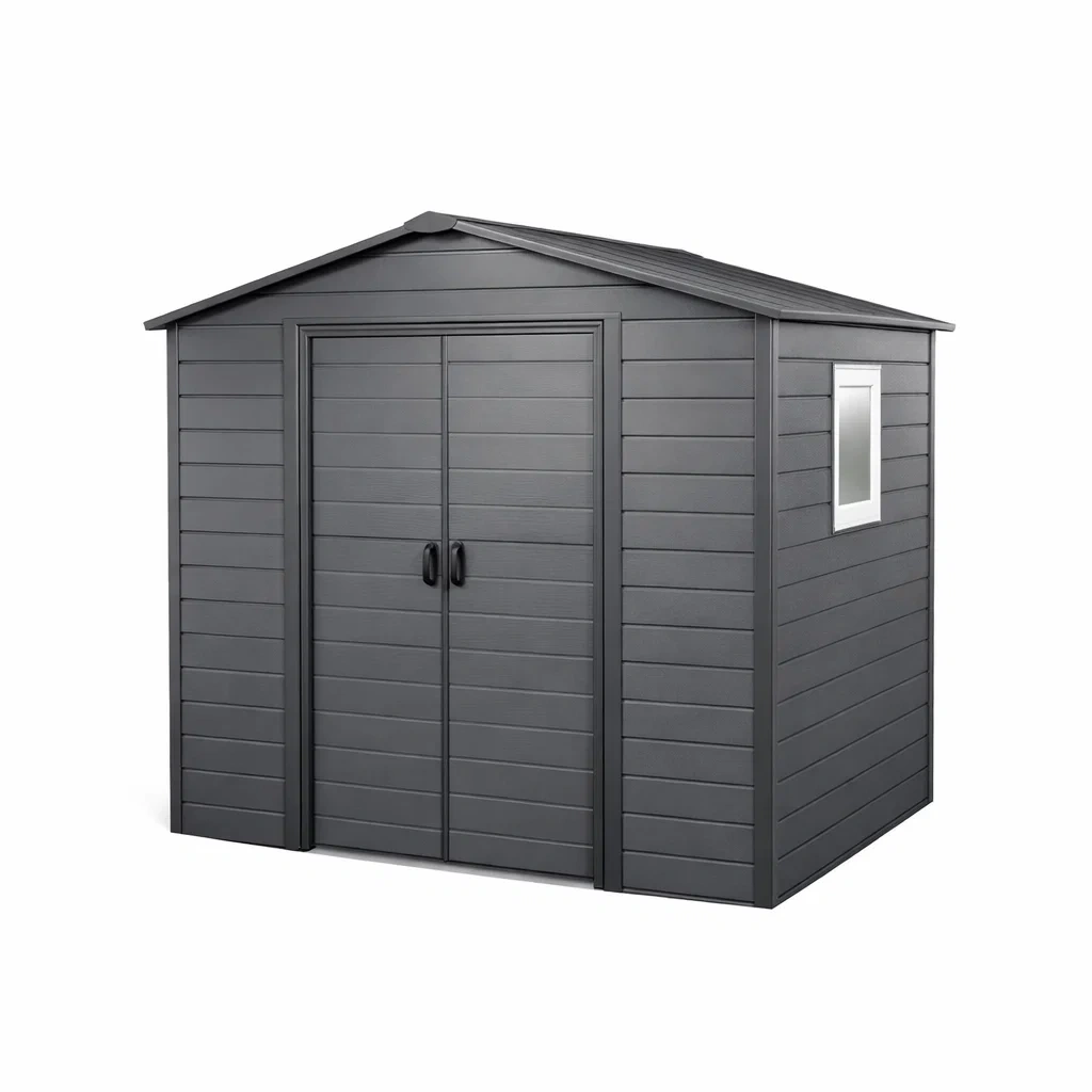 Casetta da giardino in resina grigia con finestra laterale