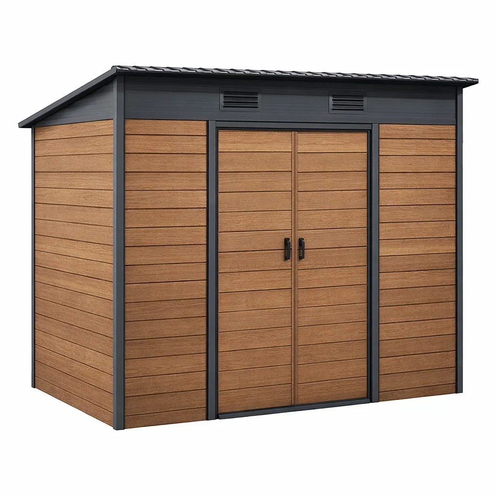 Casetta da giardino in metallo e legno marrone nero