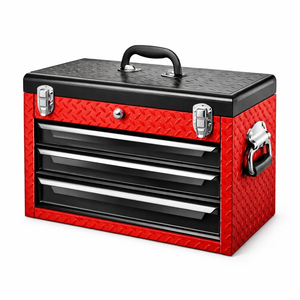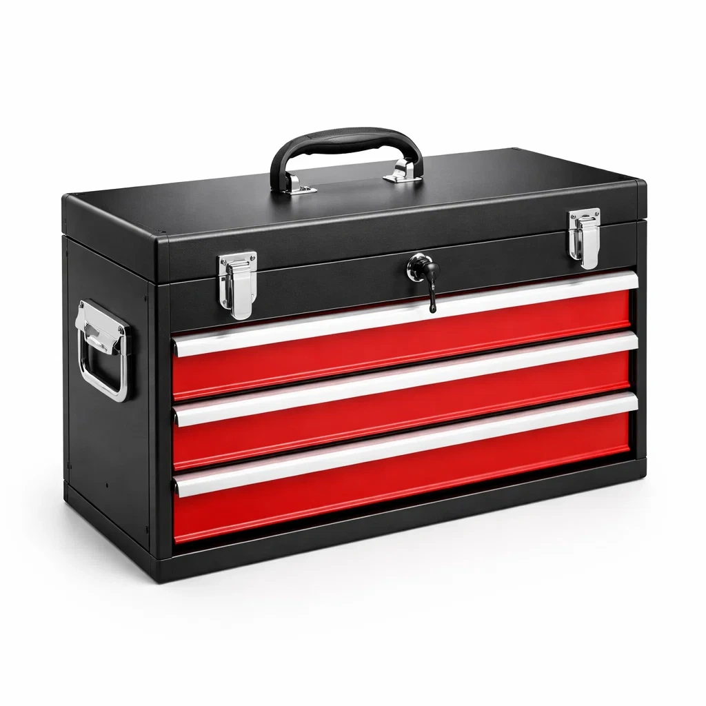 Cassetta degli attrezzi in metallo con 3 cassetti rosso nero