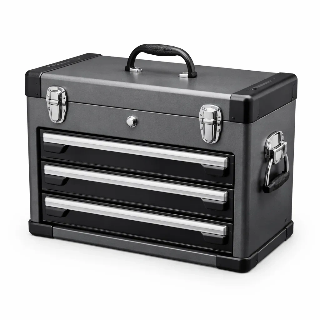 Cassetta degli attrezzi in metallo grigio con 3 cassetti