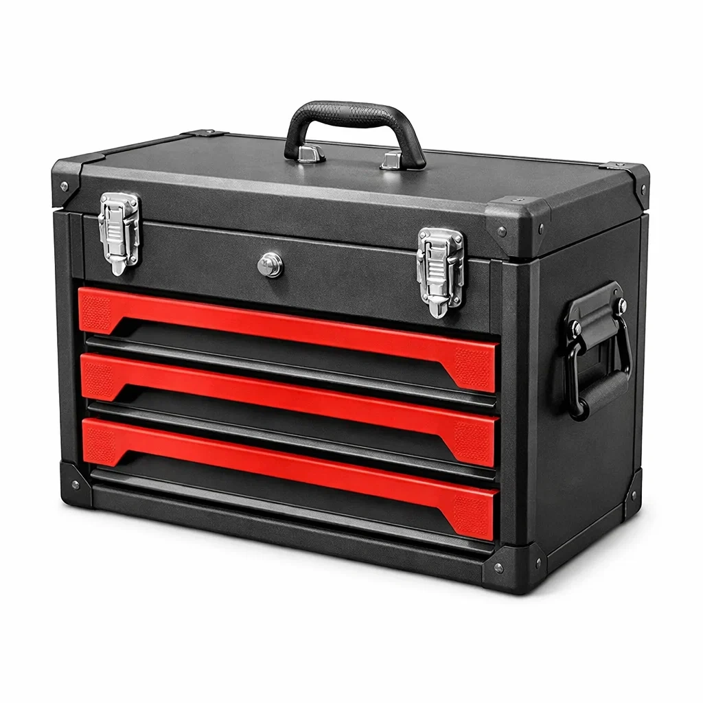 Cassetta degli attrezzi in acciaio con 3 cassetti nero rosso 51x22x33 cm