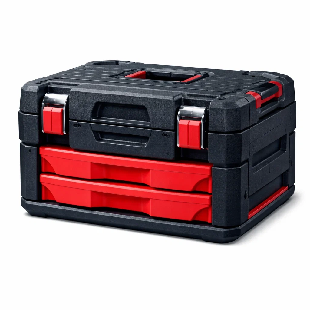 Cassetta degli attrezzi in polipropilene nero rosso con cassetti