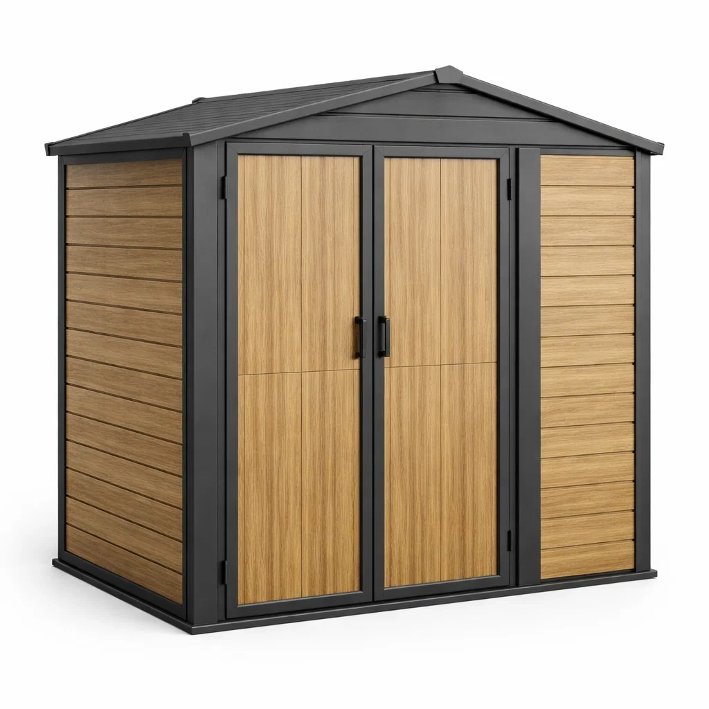 Casetta da giardino in metallo e pannelli compositi 188x152x226 cm marrone nero